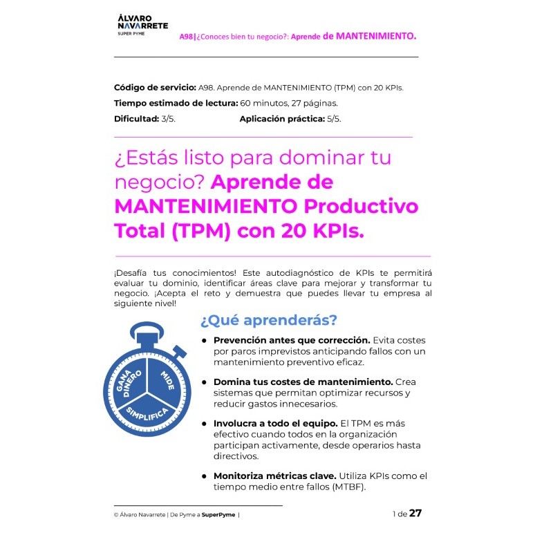 Aprende de MANTENIMIENTO Total Productivo (TPM)con 20 KPIs y conviértete en un experto