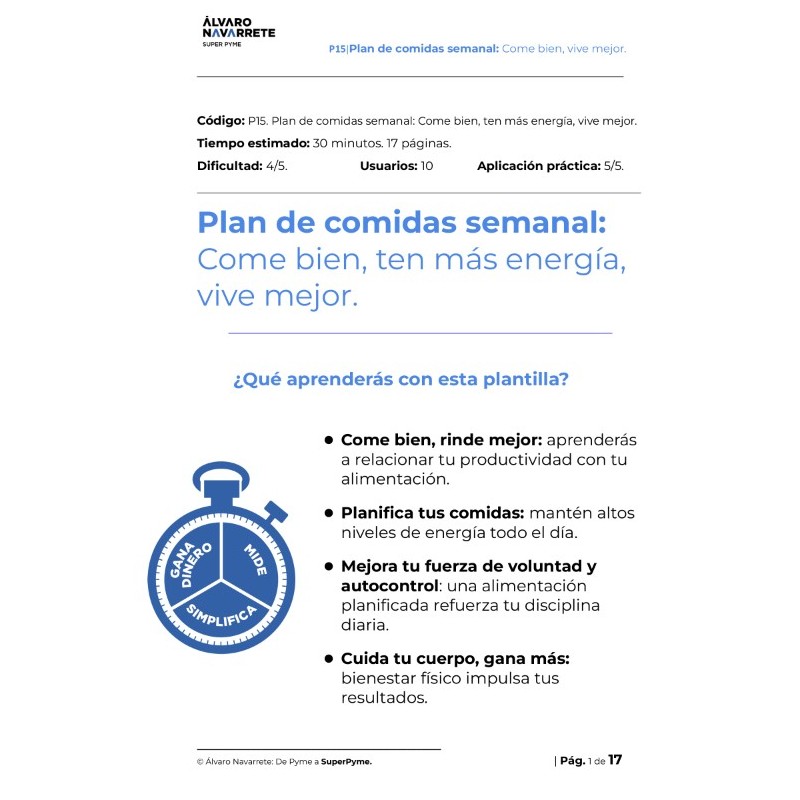 Esta plantilla te ayudará a planificar tus comidas para que siempre tengas la energía que necesitas para alcanzar tus objetivos.